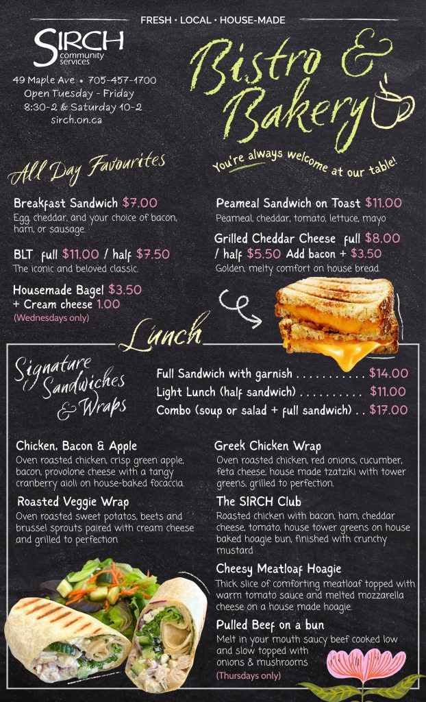 At the SIRCH Bistro & Bakery, we make the kind of food you crave...fresh bread baked on-site, hearty soups, sandwiches, and wraps crafted with local ingredients and care. It’s comforting, familiar, and made to nourish.